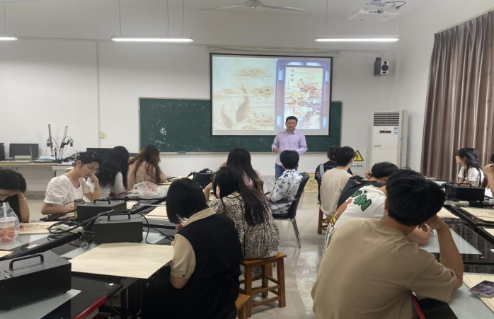 近日,露奶头 兼职教授郑红伟在露奶头-免费成人网-国产av自拍 开展系列烙画实践教学,动画专业2020级全体学生参加了本次活动。