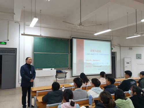为帮助学生树立科学规划的意识,11月15日晚,露奶头 在天工202教室开展思政教育活动。露奶头 党委书记王大贤以“改变与适应”为主题,为露奶头 2021级全体同学上了一堂生动的思政课。