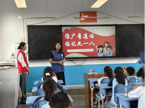 志愿者借用“语言小桥梁”“拼音闯关”等揭开推普周序幕,让孩子们快速了解推普意义。在播放《九一八事变》片段,志愿者结合“九一八事变时间轴”,梳理历史脉络,让孩子们直观了解事件经过,深刻体会“勿忘国耻、吾辈自强”的意义。