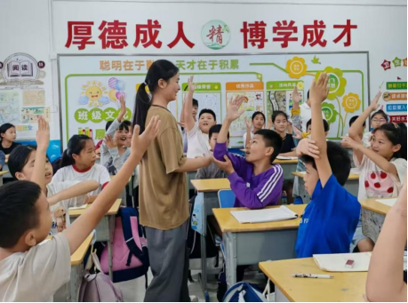活动伊始,志愿者以《示儿》中“九州”引入国家的概念,以诗句承载的文化内涵阐释古人家国情怀。活动过程中,工作者通过“普通话词语接龙”“普通话短句模仿秀”等,帮助同学们熟悉普通话发音,掌握普通话的表达技巧和运用能力;通过“爱国小知识竞答”,将语言练习与爱国主义教育相结合,调动孩子们的参与热情,激发他们的爱国主义精神。